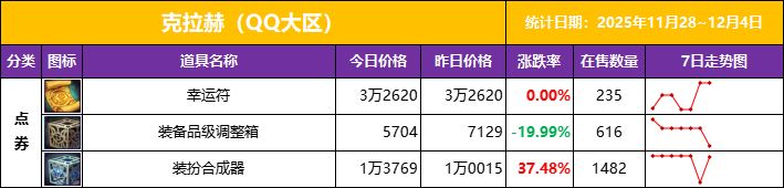 本周矛盾价格下跌,从在售数量来推断,应该是之前的市场需求被消化了,暂时没什么用矛盾的地方,导致本周价格提不上去,相比微信区,QQ区的发展相对慢一点,大概率还会迎来一波需求期,如不放心,可以采用分阶段上架的方式,尽可能抵消价差损失,总之未来一段时间要紧盯市场和官方信息,及时作出调整。