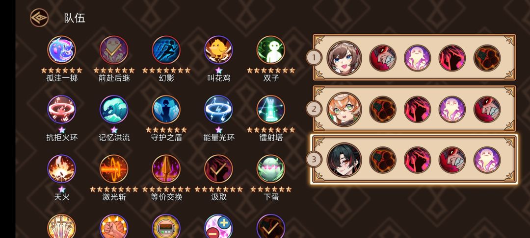 6.冒险家:队伍会有随机的3个冒险家,必须解锁了才可以使用,所以推荐有自选宝箱但没解锁的可以自选一个冒险家解锁,有条件的可以抽高星。