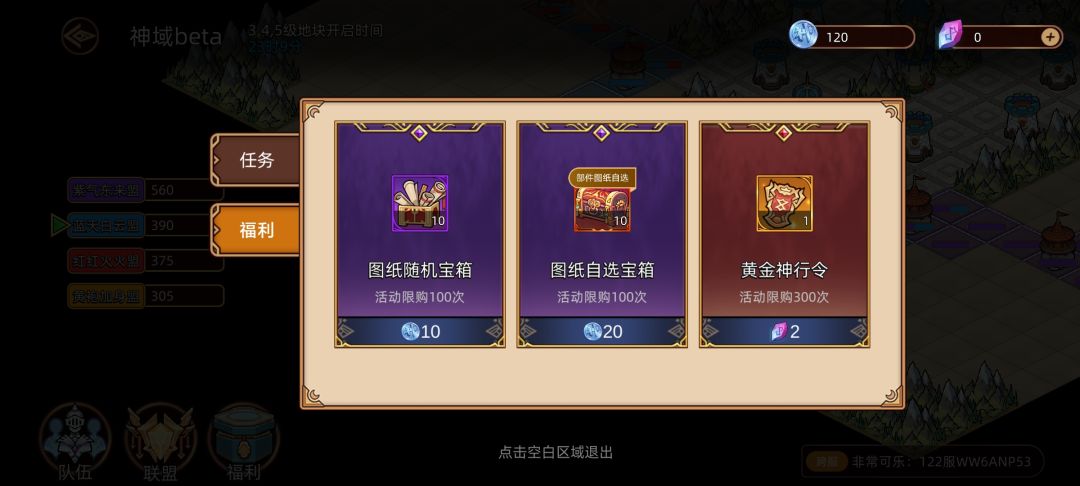 1.等级低的优先铺路,就是占据等级低的格子,把格子连接起来,等级高的占据格子等级高的建筑(图2),空白格子为1级,外围建筑格子为2级,内圈就是3、4、5、6类推。占据格子完成任务会获得神域币,可以兑换图纸(图5),这个和矿区一样