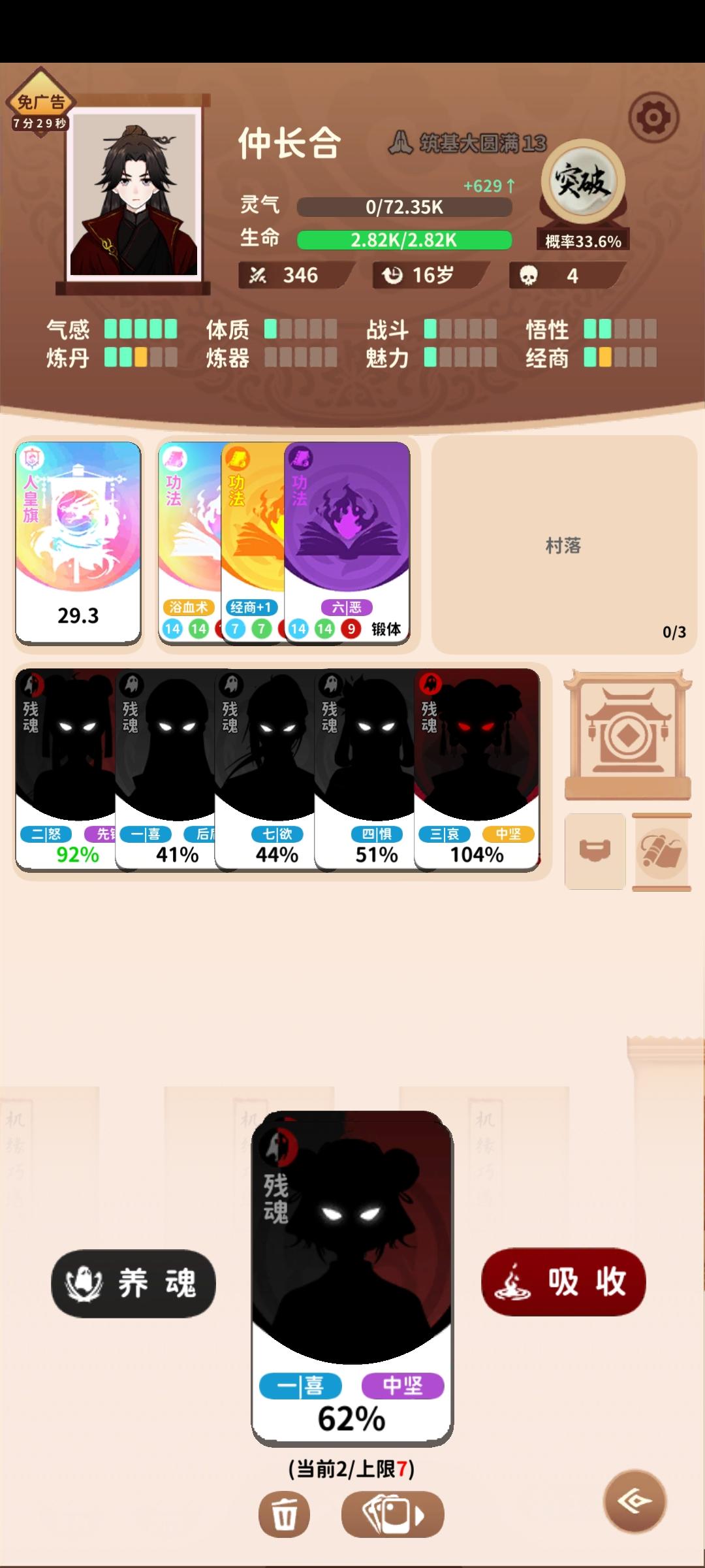 然后,对于万魂幡来说,如果你求稳,这个推荐开高体质,高战斗,然后慢慢除恶升幡集魂就行