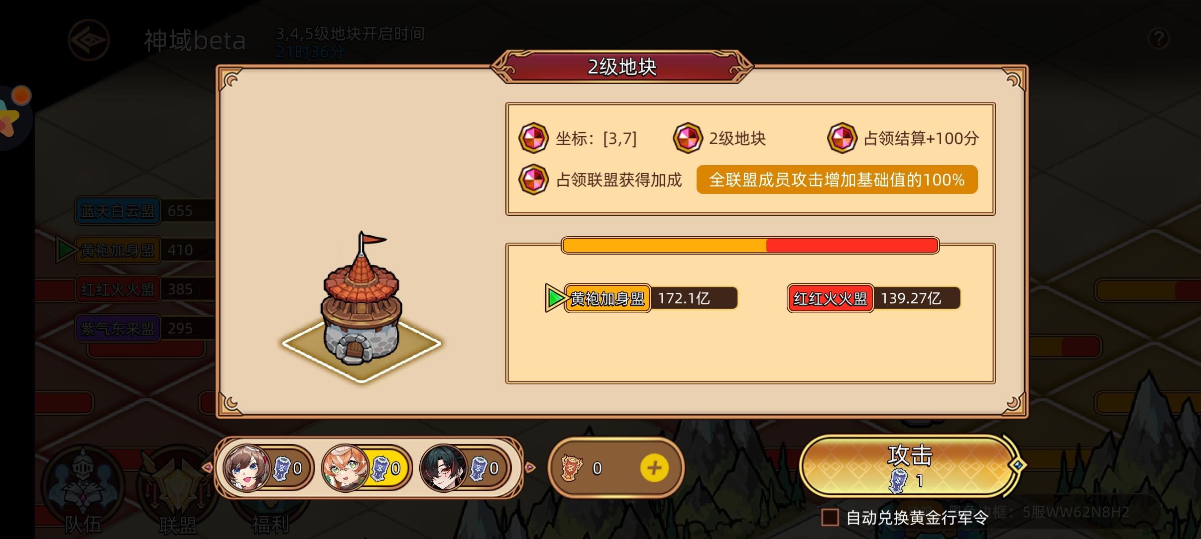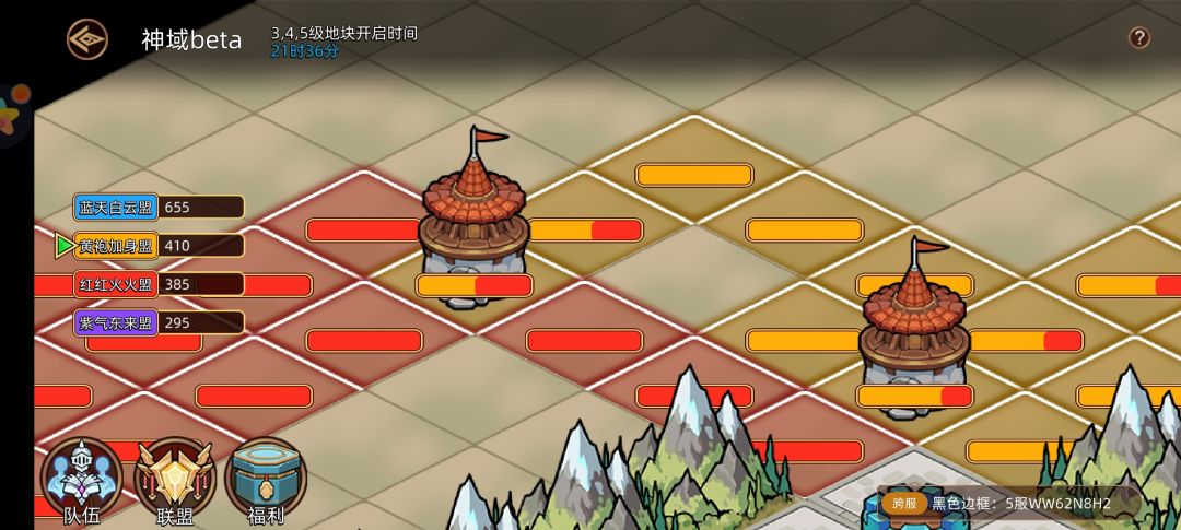 所以神域最好是第一时间介入,分析好资源路径,联盟分配好任务,占完优势地块,可以取得巨大的优势。氪佬随意。