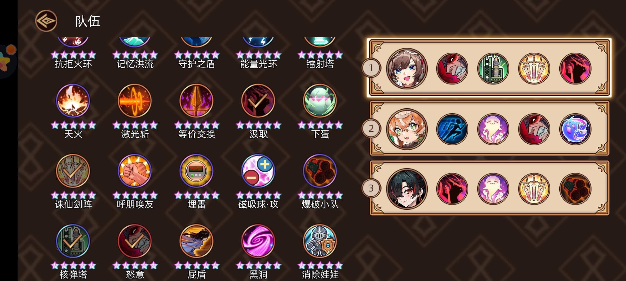 本期三个人的搭配大差不差,攻击类型差不多。次数有限没研究搭配,各位还请自行搭配