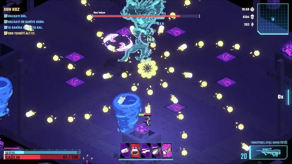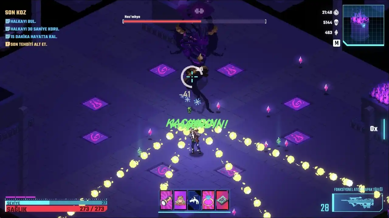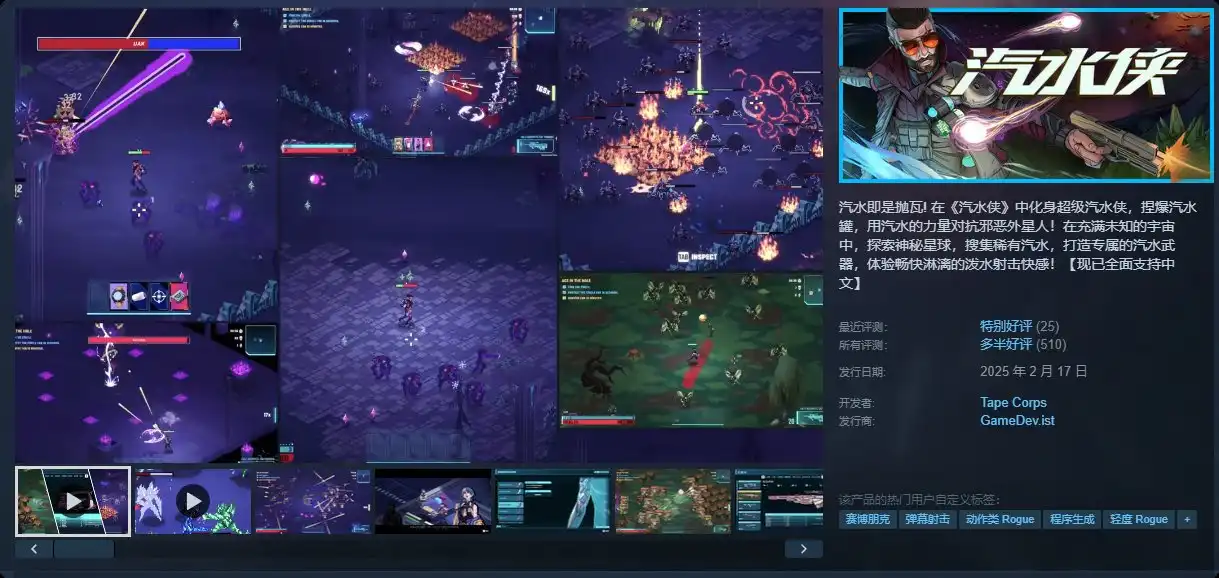 《汽水侠》是一款赛博朋克风格的类吸血鬼幸存者游戏。本作的机制很新颖,在类幸存者升级随机选技能的基础上加入了随机卡牌的玩法,两种随机性叠加在一起,割草的爽快感进一步提升,尤其本作对于技能给攻击范围、伤害给的非常足,技能的特效也很帅,在前期就能保证很不错的优势。题材更是十分幽默,玩家将化身超级汽水侠,捏爆汽水罐,用汽水的力量对抗邪恶外星人!
