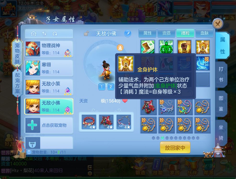经测试,回复血量为114,等级血量。回血量可以说没用。普陀孩子估计同理,纯粹是用来加状态。不过加状态也很棒。由于已经养了2个孩子并带上饰品后,已经用河水试了,无法再养多第三个孩子。所以已经养的孩子,要不就割肉,要不等等看。丹山孩子是按照攻击回血,但是回血百分比少于佛门的目测。策划预计是想着辅助孩子,平时打打拳,然后人死了啦啦人。但是,这样很鸡肋。