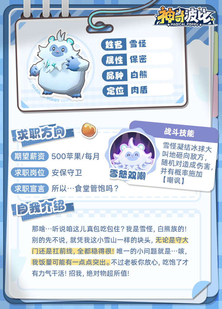 预约《神奇波比》+在评论区分享你对雪怪这名员工的看法,12月13日我们将在评论区的老板中抽送以下奖励:【精美盲盒*1】