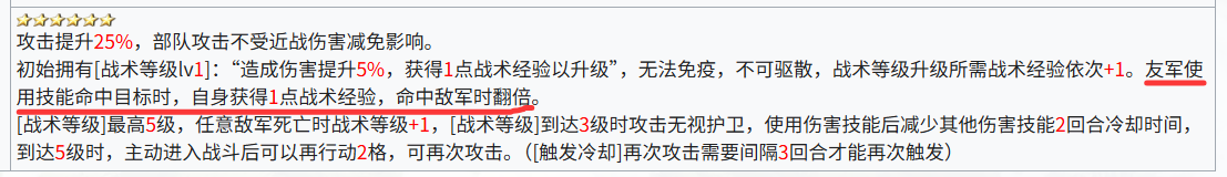 被动也是非常好叠,友军技能命中就可+5,叠5层就满了,第一回合叠满基本没问题