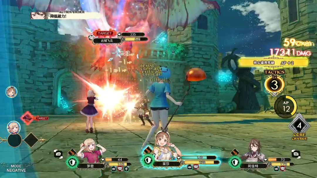 本作的战斗系统是根据AP点数的指令战斗,每个角色的行动条会决定行动的顺序,攻击会恢复AP,使用技能会消耗AP,使用道具消耗CC点数,这套战斗玩法最重要的就是不断积累AP值,让策略位阶提高,每提高一阶,攻击的效果都会提升不少。利用好不同角色的技能与先前配置好的炼金道具可以使战况变得更有利,提高作战成功率。