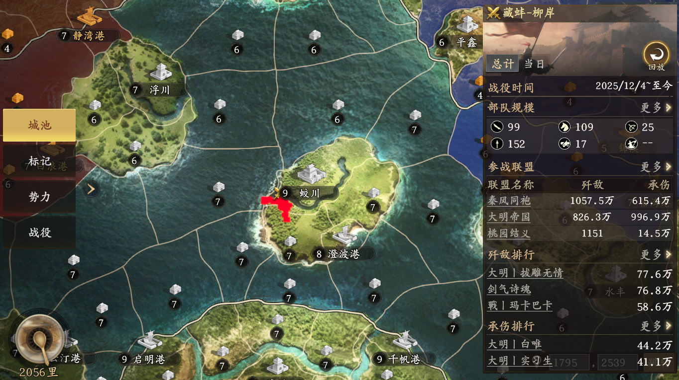 同期,北部战场秦风也同大明交战,秦风为争夺岛屿资源,不顾战线过长问题,率军远征,大明察觉其意图,立即派兵驰援,然因率先集结之优,此战秦风取得上风,然大明虽稍逊一筹,却未失去码头控制权。