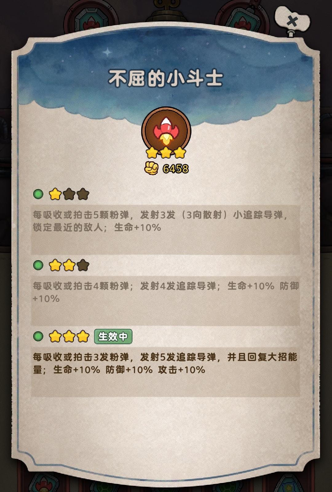 不屈的小斗士更适合依赖粉弹输出的角色,它不仅可以发射追踪导弹,还可以更快地释放终结技。