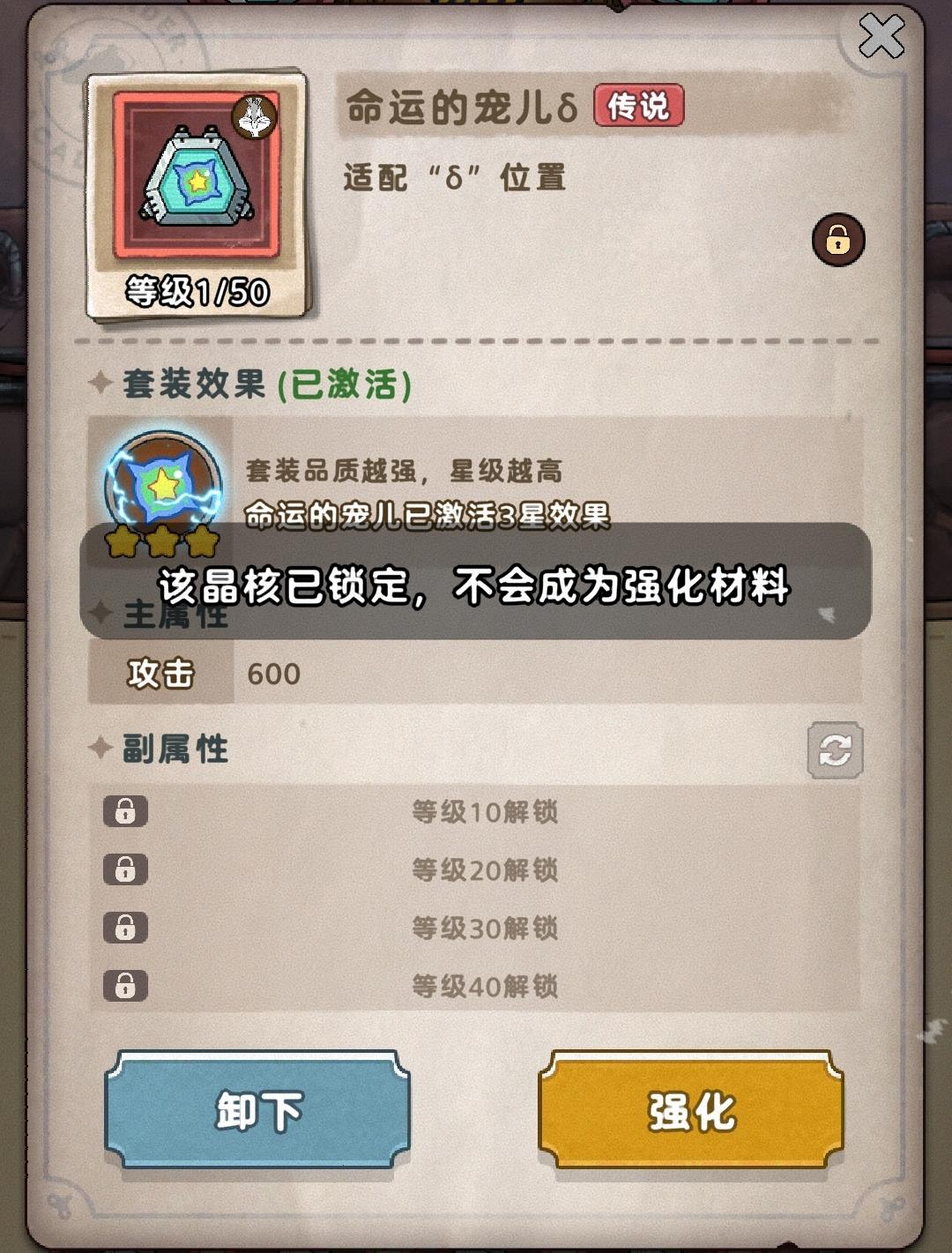✅ 锁定后无法作为强化材料消耗,毕业装永久存档;