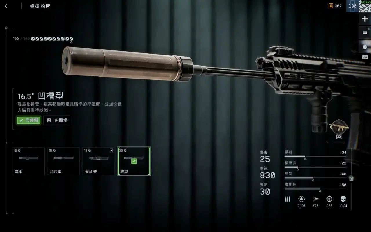 轻型枪管能在加快开镜的时候提高移动准度,在近距离战斗中比较有用,能一定程度减少散布