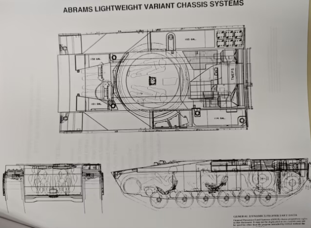 ALVT的车体变化较为显著。与标准M1相比,该车缩短了73厘米并减少了一对负重轮。发动机仍然采用AGT-1500系列燃气轮机,但改为横置以进一步缩短车身长度。底盘方面的其他变化还有将扭杆悬挂改为不可调液气悬挂,并计划在发动机舱盖板、侧裙板、乘员舱盖等次要部位使用钛合金以减轻重量。