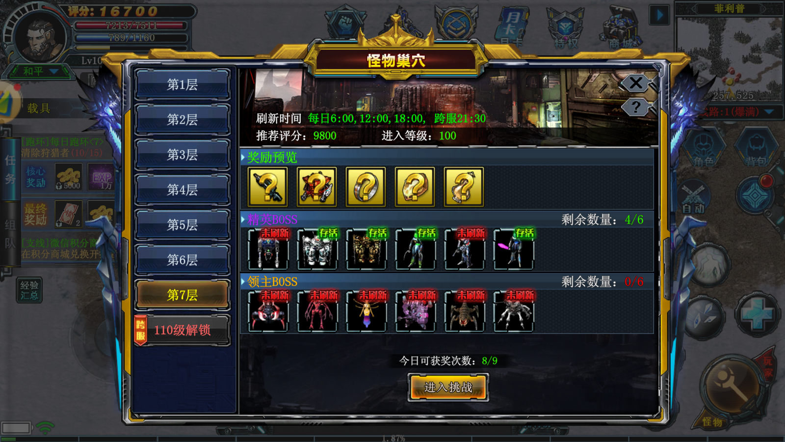 - 怪物巢穴:多层挑战,击杀精英和领主有机会掉落金装、宝石,每日奖励上限6次。
