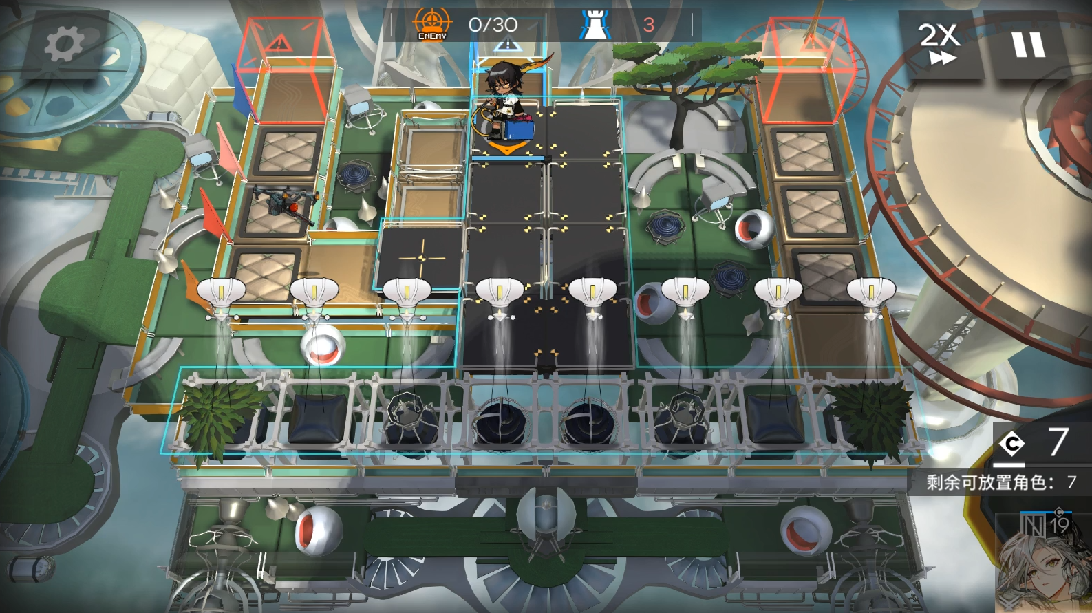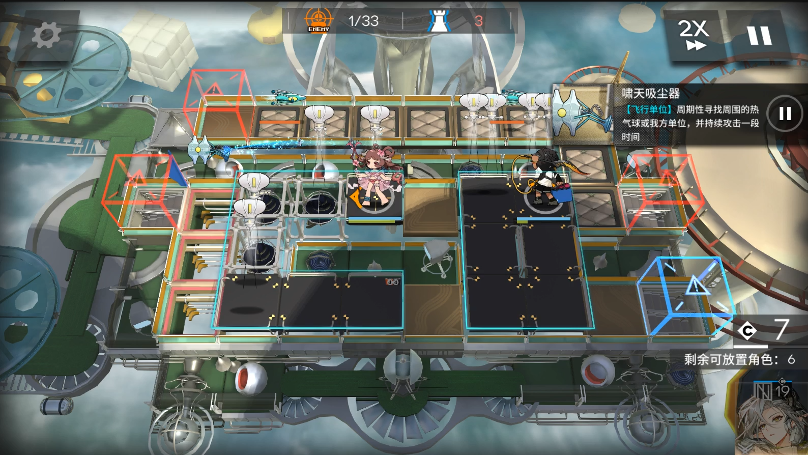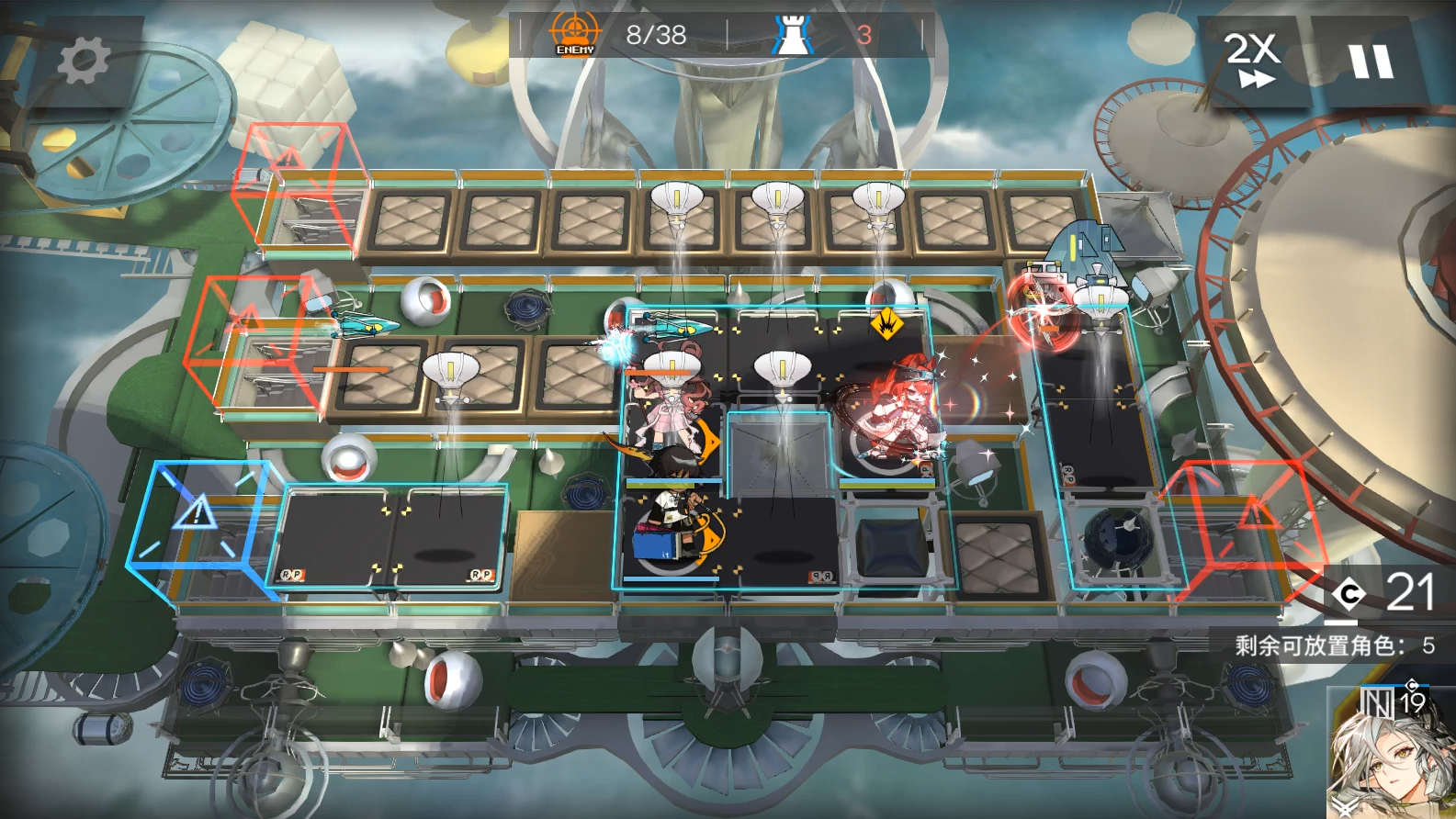 依次部署大姨朝右,棘刺朝右,小羊朝右挂机。大姨后续因为浮力消失触发机制导致技能关闭,不用管,平A都能过。