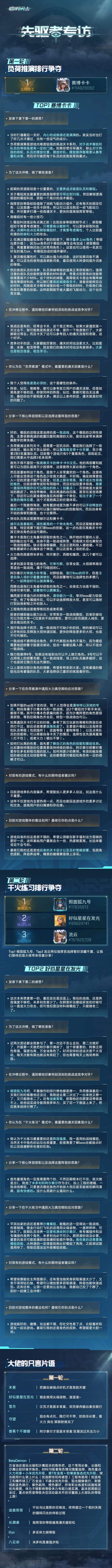 战术官小艾特意邀请到在「火种测试」期间,长期领跑在排行榜前列的优秀指挥官,为大家带来超硬核超多干货的实战秘籍专访!