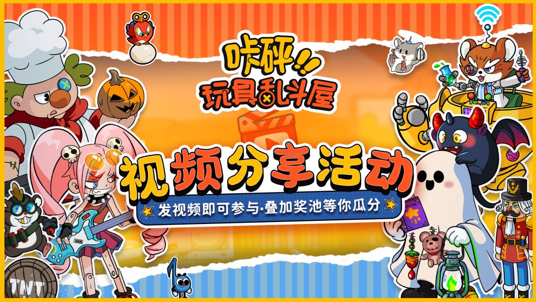 带话题#咔砰玩具乱斗屋 并 艾特我们游戏的官方账号(可点击上方各平台的帖子链接查看!),分享时长8秒以上的《咔砰!玩具乱斗屋》相关视频,或进行时长30分钟以上的游戏直播即可参与奖池瓜分。视频、直播只要与我们的游戏有关,具体内容、题材均无限制。
