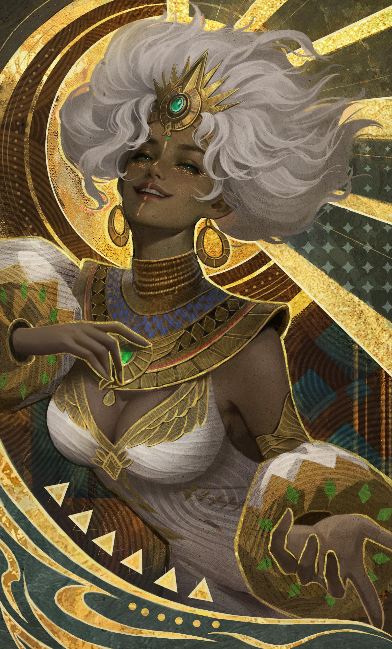 泽菲拉毅然决然地离开了她生长的村庄,走入了酷热的荒漠之中,自前往地脉深处。她紧握法杖,古老的咒文自唇齿间流交淌而出。力量开始凝聚,卷起的黄沙在她周身飞舞,绿宝石吊坠发出脆响,在那沙与光的神奇帷幕中,泽菲拉自身亦化入那沙之洪流......