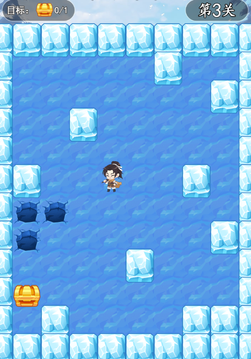 2、角色滑动经过宝箱格时会自动拾取,拾取关卡内所有宝箱即可通关。