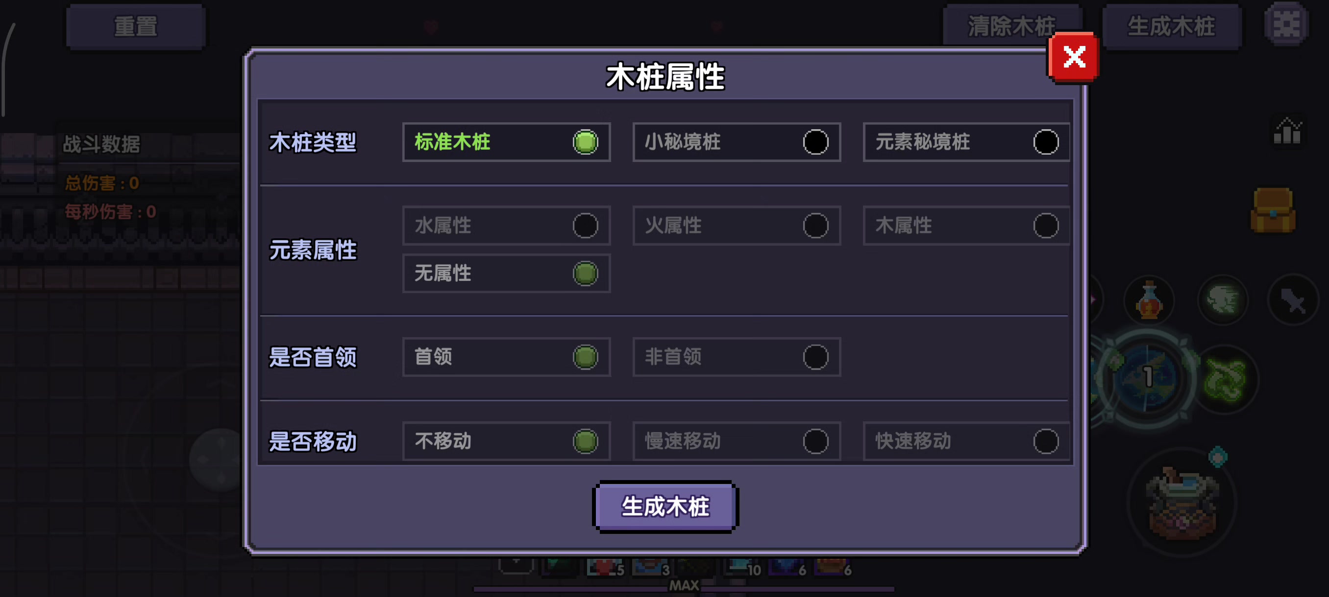 3.在木桩倒计时56s时候靠近木桩,55s时候开启魂系,此后切换为主手武器(此时不要普攻),51s时候迅速清除木桩,然后立马召唤新木桩,木桩出来后开启连点器(同时按住普攻)。