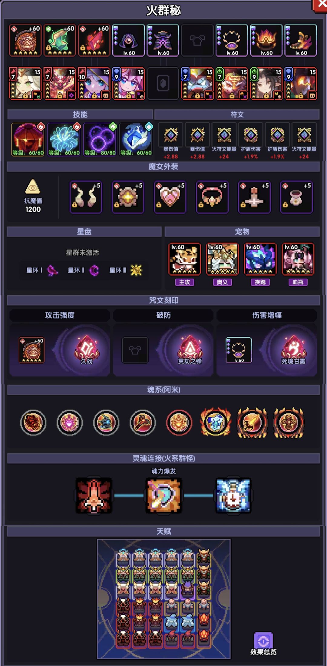 吞火lv9:拾取生命球/收到火属性伤害时,获得【吞火】,每层提供6.3664%技能伤害,上限30层,即叠满后190.992%技能伤害