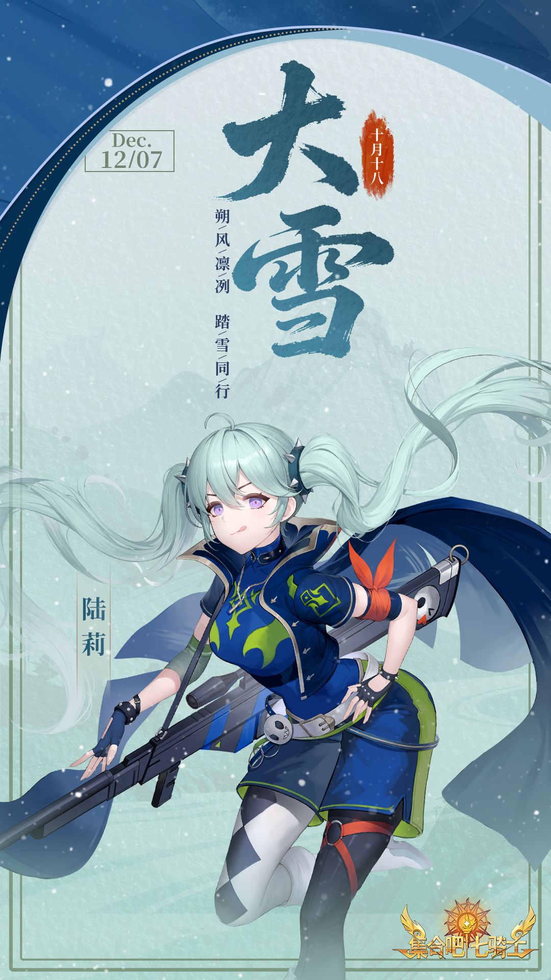 七骑士身披霜甲,在纷飞白雪中为您镇守前线,静候各位团长归来共赴年末决战。