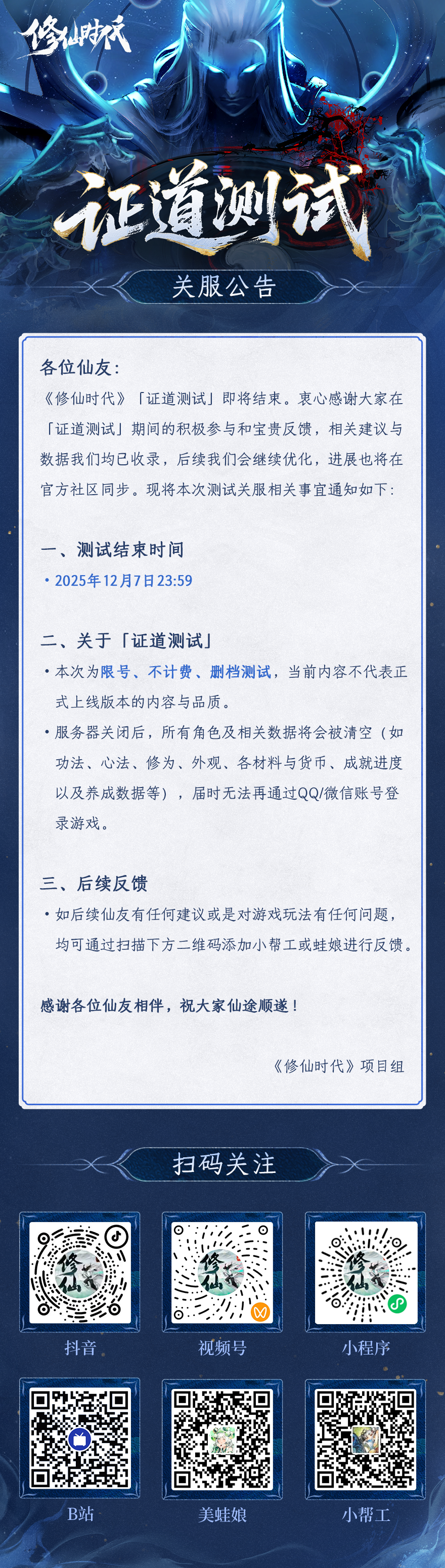 修仙时代「证道测试」关服公告