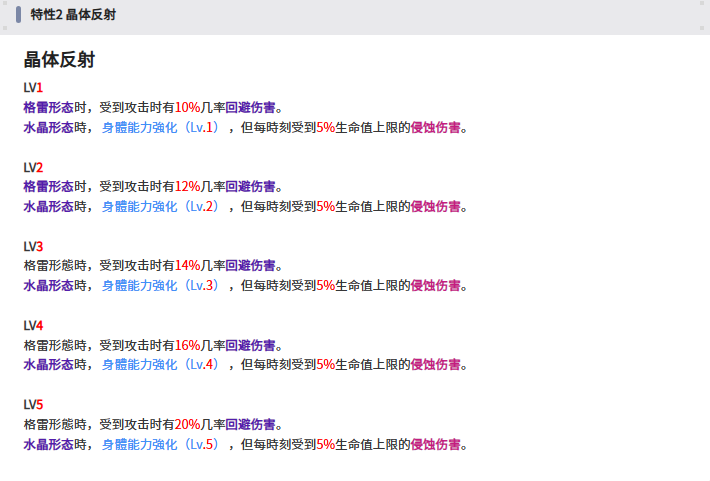 各类形态武器距离增加,远距离造成的伤害百分比增加,水晶形态的技能在上面已经介绍过了。