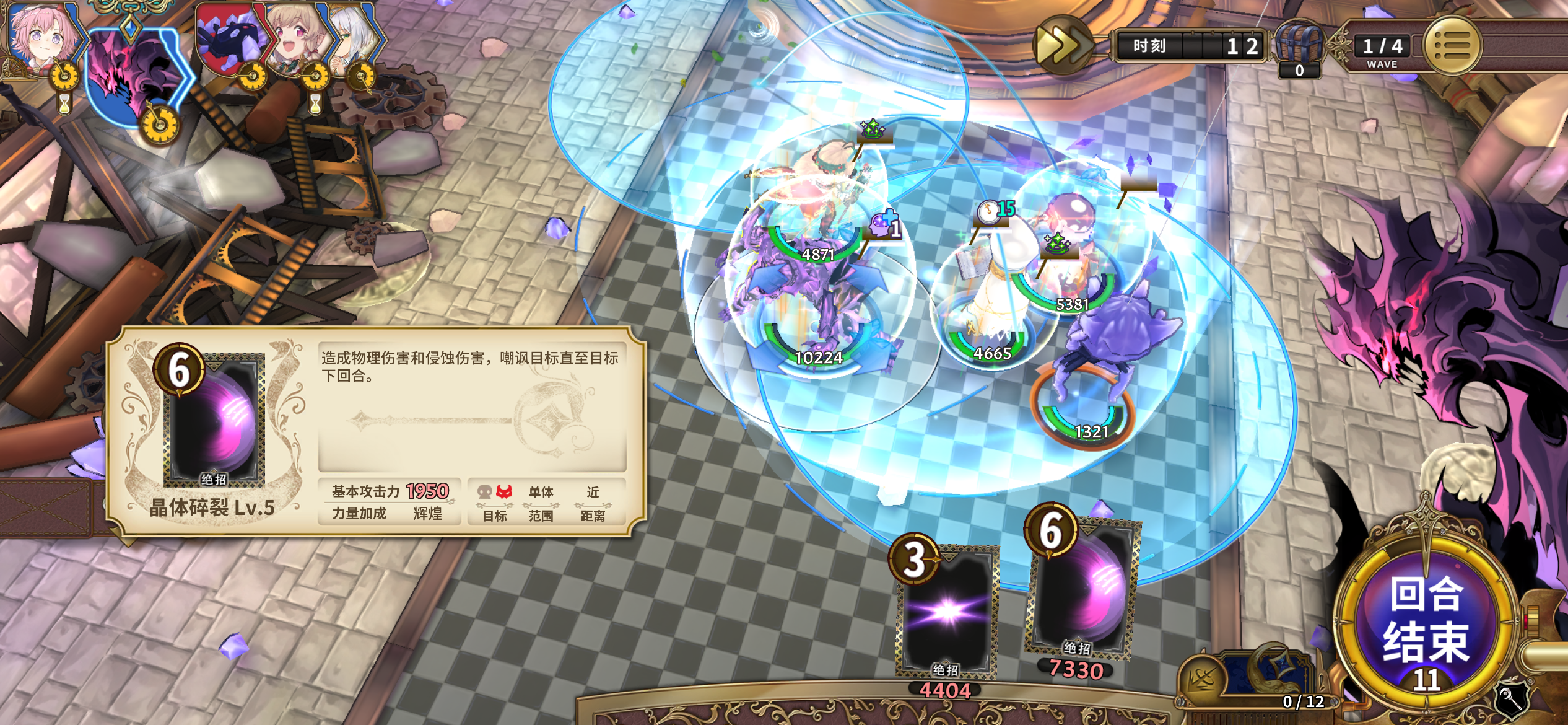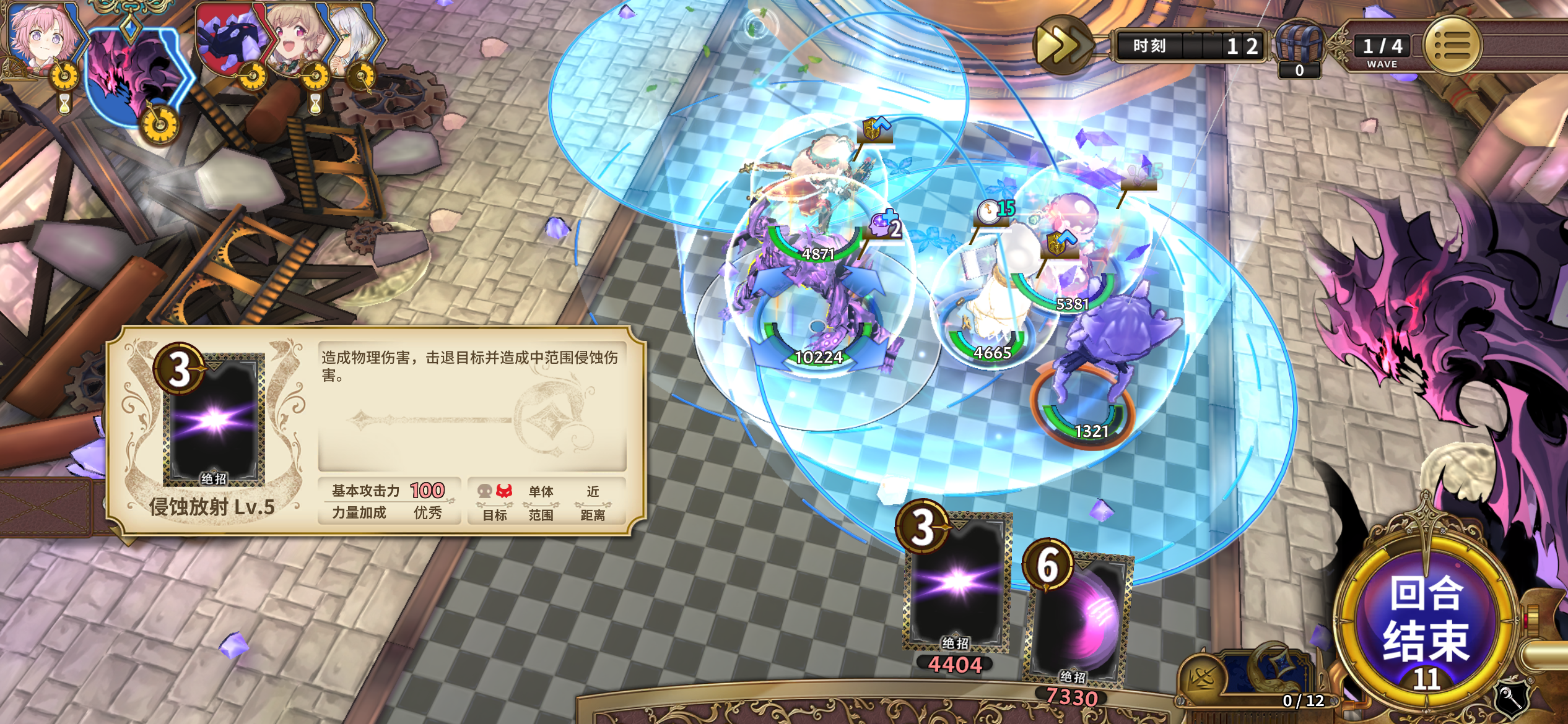 消耗为3的技能主要用来清理聚集的杂兵,而消耗为6的技能是我们对单的主要输出手段(如下图)。