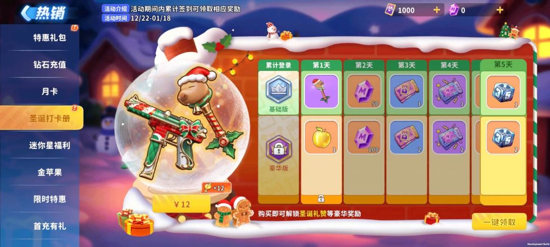 [活动内容]:12月22日-1月18日,完成砍钻任务,超低价购入双旦专属“迷你赛车-圣夜礼赞”皮肤载具。