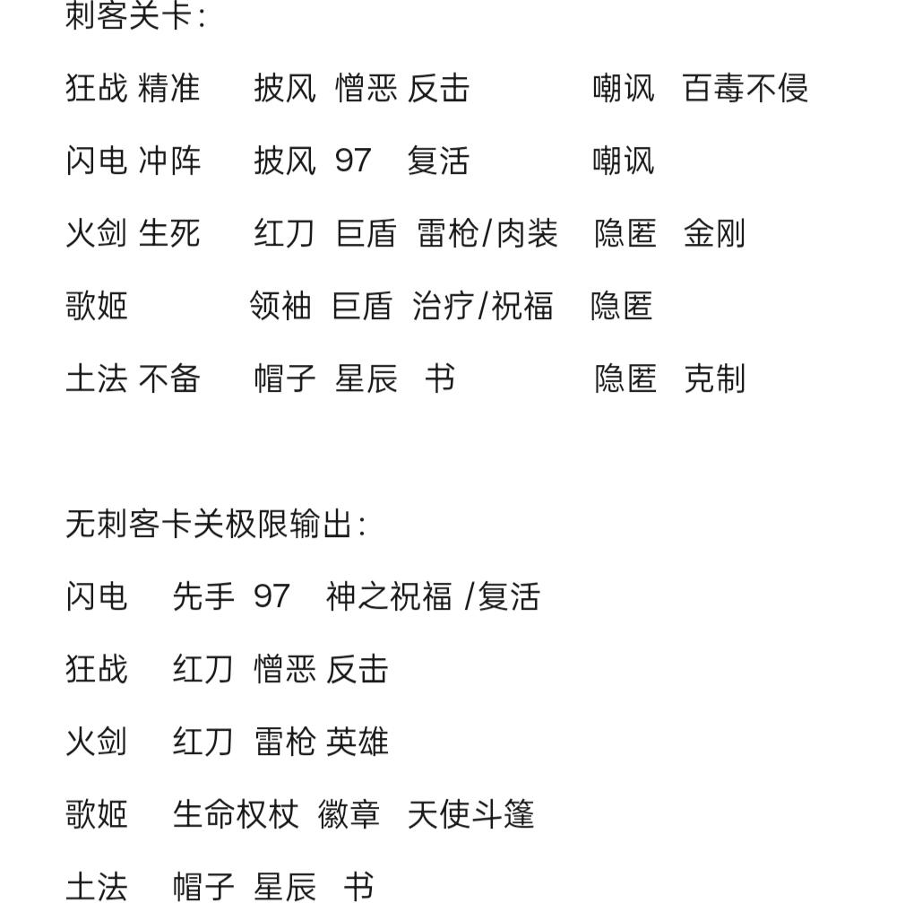 无刺客关主力:接力5-10、10-15、15-20关卡,能补刀一关+打残一关即可