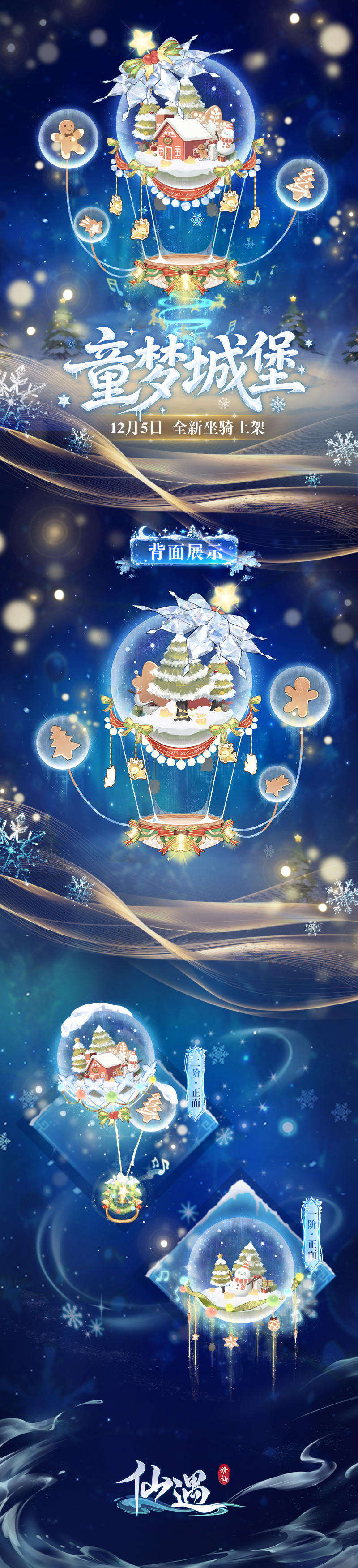 本次的新坐骑【童梦城堡】以童年趣梦为主题,将童真寄予城堡、气球、水晶球等载体,编织出一曲动人的冬日舞曲~