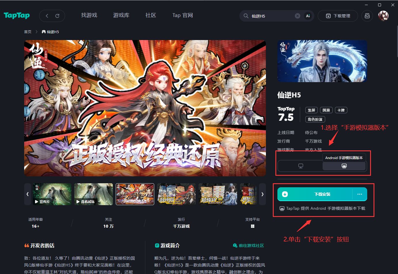 《仙逆H5》在Tap上开放PC端咯,并且官方账号已实现多端登录!