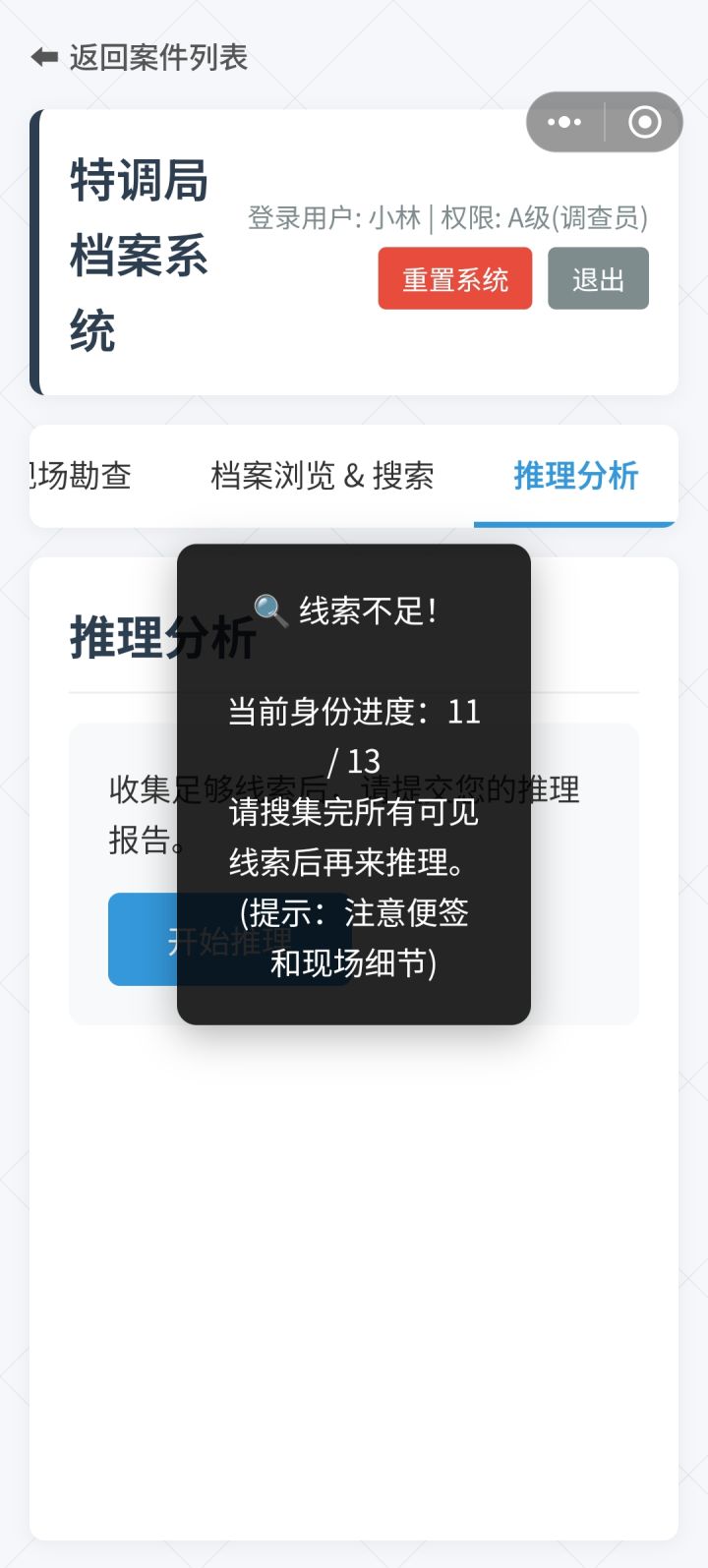 我好菜,第一个案子都过不去。是很感兴趣的游戏但是我真的找不到更多线索了