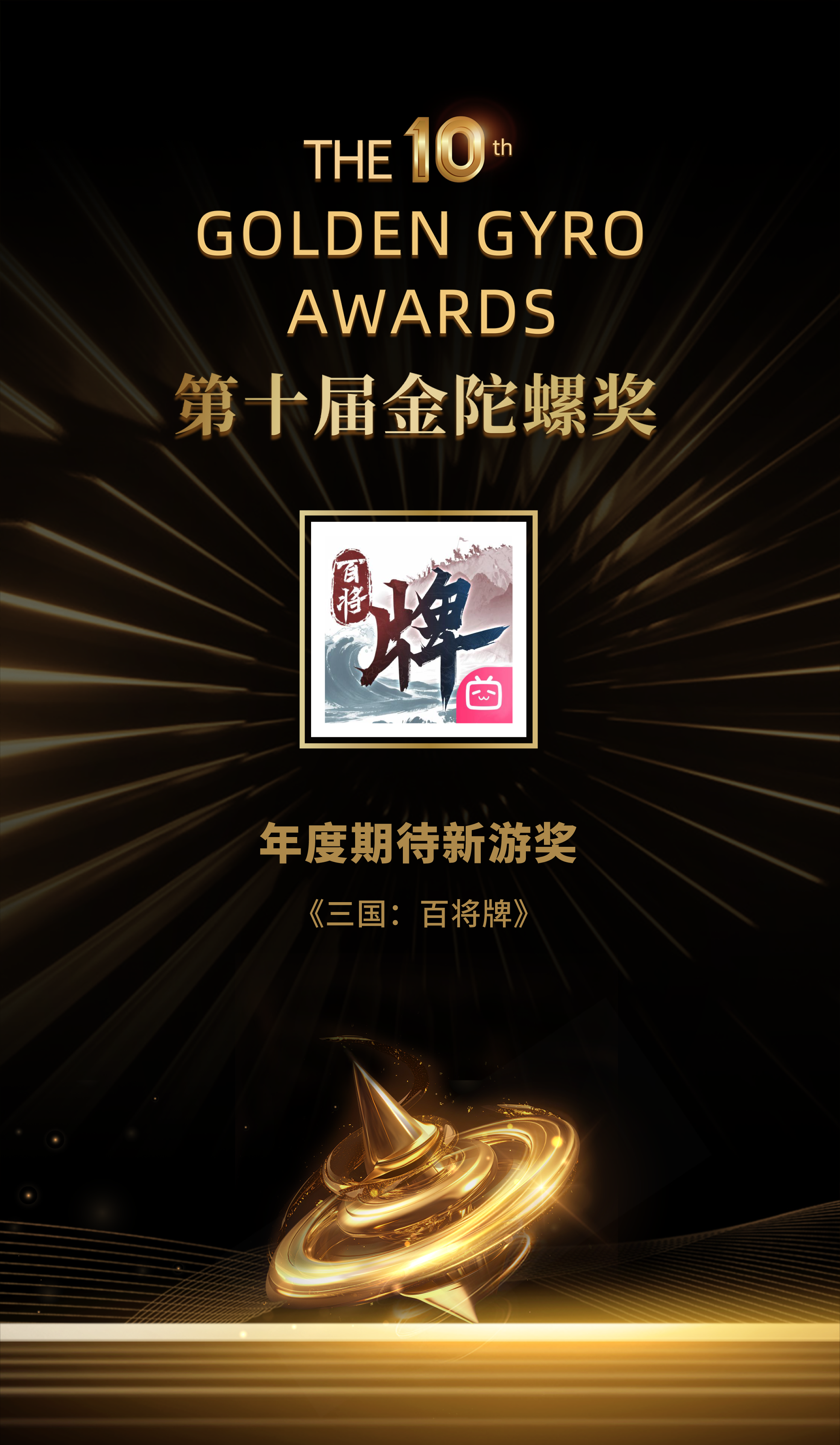在刚刚落幕的2025未来商业生态链接大会暨第十届金陀螺奖颁奖典礼上,《三国:百将牌》再次荣获游戏类重磅奖项——年度期待新游奖。
