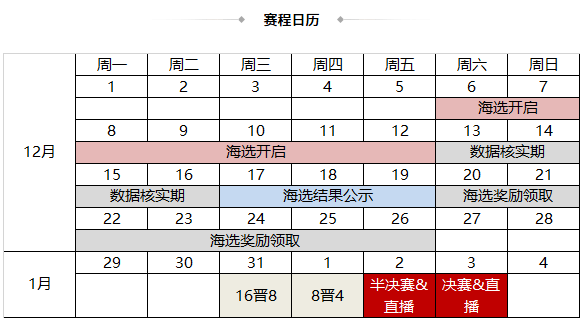 12月6日~12月12日:个人海选赛,单人匹配参赛,每日12:00~22:00开赛