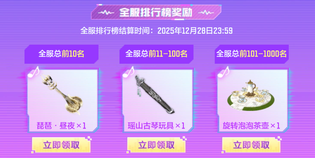 琵琶·昼夜、榣山古琴、旋转泡泡茶壶等奖励