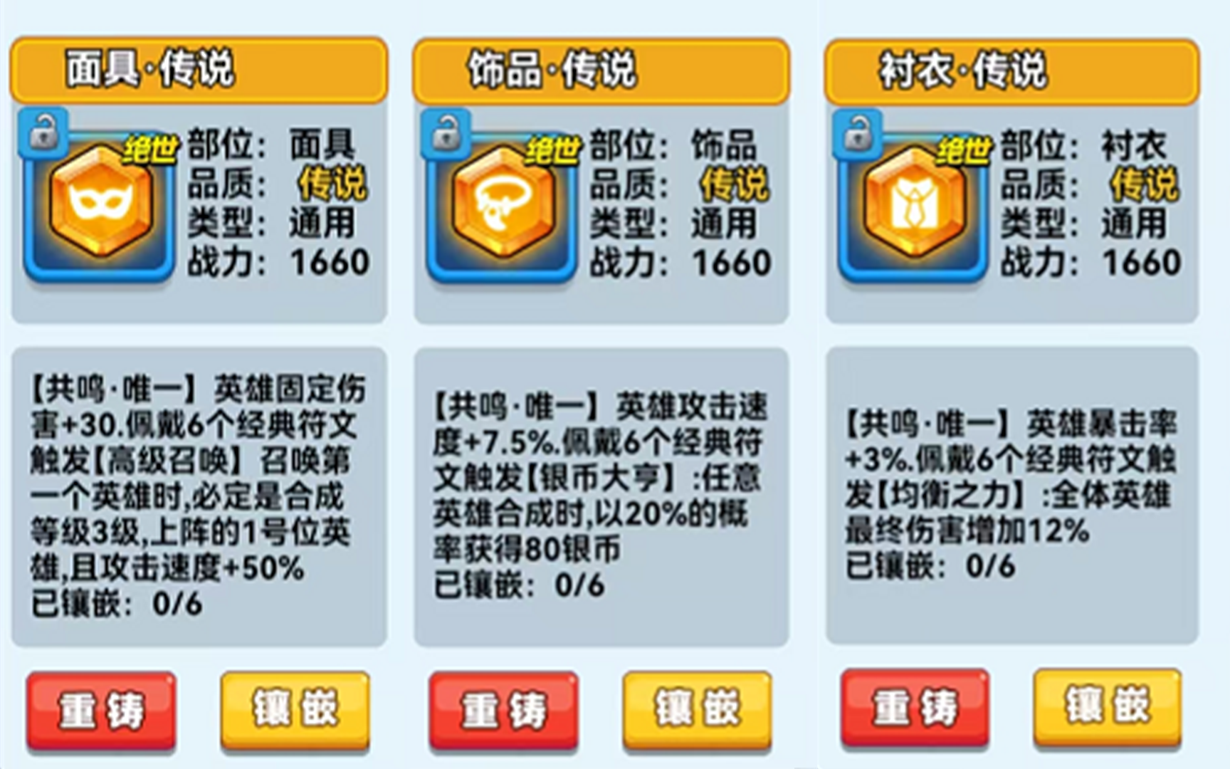 A:同部位同品质符文可互相合成,6个合成1个、品质递增,如6个白合成1个蓝、6个蓝合成1个紫等等。