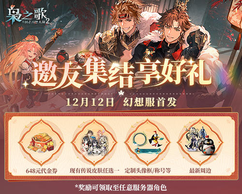 ◪成功邀请好友参与【幻想集结】活动,拿专属称号、头像框、头像、天机令等奖励!在12月12日幻想服开启后,可领取奖励哦~