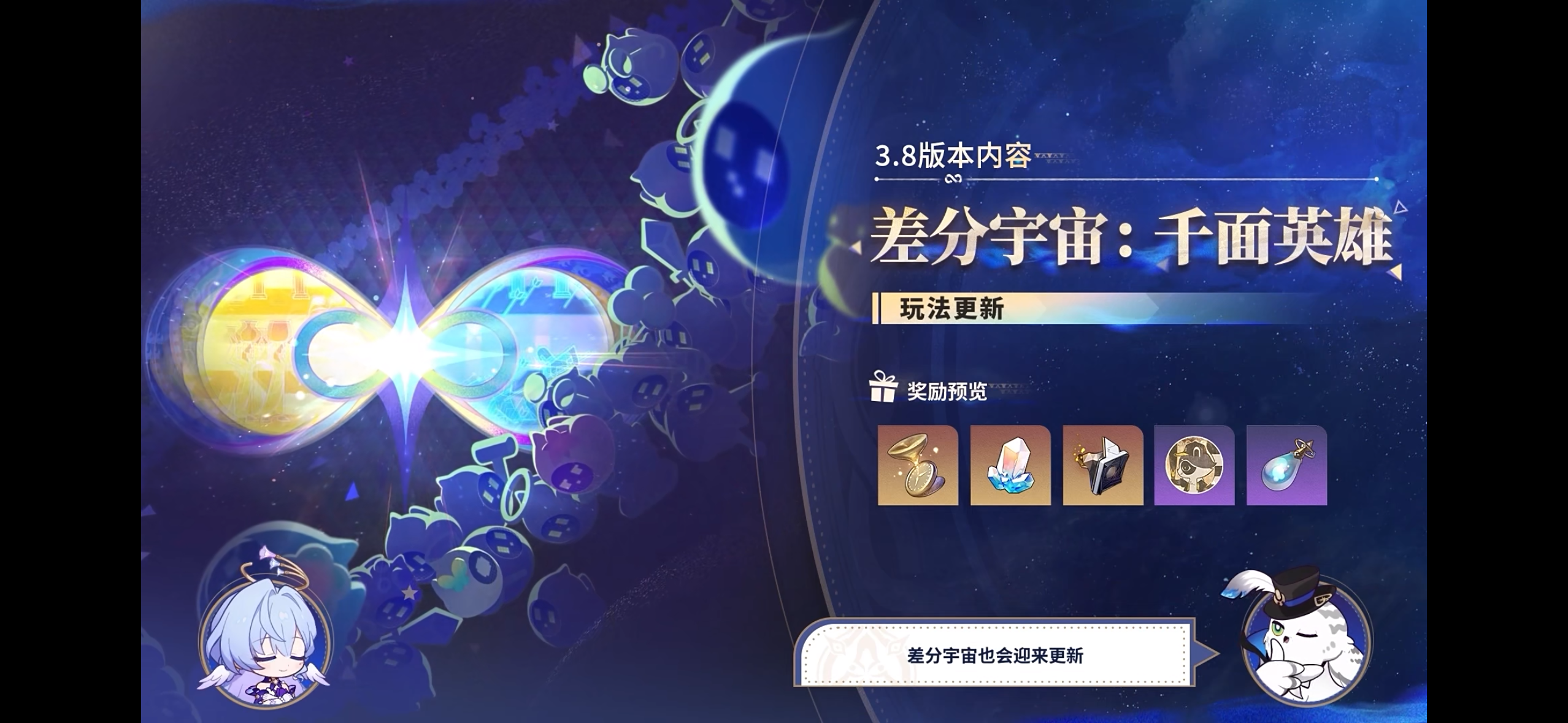 活动有因为延期二导致的三个活动,也有两个新活动,版本签到送十连还有就是差分宇宙更新到120级以及多的几个加权奇物,然后多了一个游戏是把气球弄成一个颜色