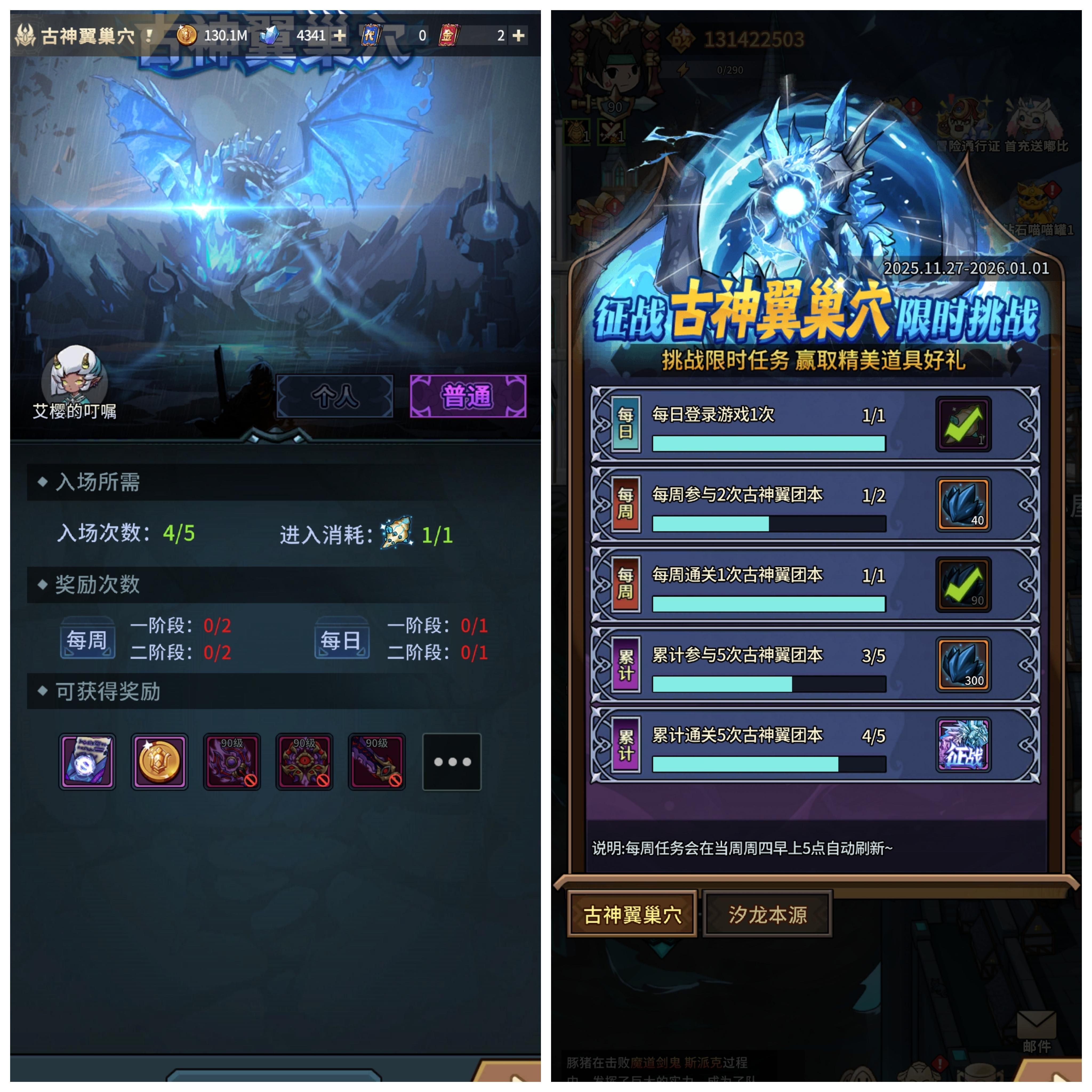 首先看这个公告,11月份bug和临时维护较多,对玩家有利的bug是迟迟不修复,影响氪金收益的活动秒修复,在这我就不赘述了,玩家心里清楚,一个打团组队状态异常问题,三个月了没有任何改变,本来团本人就少,再加上组队状态问题,有些本想打团的玩家也不打了,导致打团人数更少。团本给的材料数量也不合理,尤其是本源团本,下面我会着重讲。现在更新后,在图里面是加不了人,也看不了谁有牌子谁没牌子的,希望优化改回来,现在古神之翼还有个新bug,作为队长完成团本后,不扣团本次数也不扣团本门票,其实没啥影响,但是和活动挂钩,新区的玩家还是有点影响,如下图