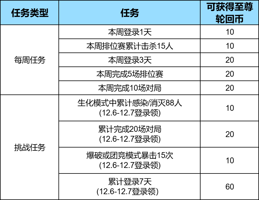 活动期间,可通过每周任务和挑战任务可获取“至尊轮回币”。