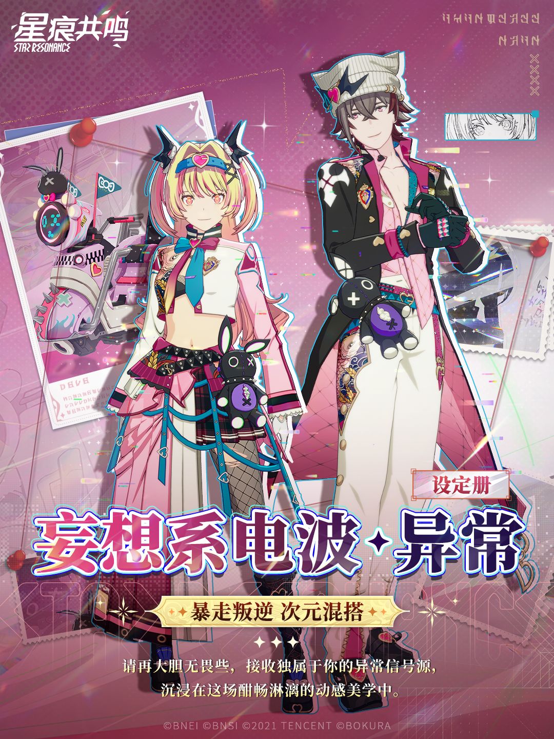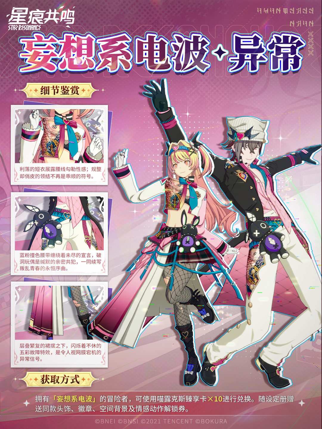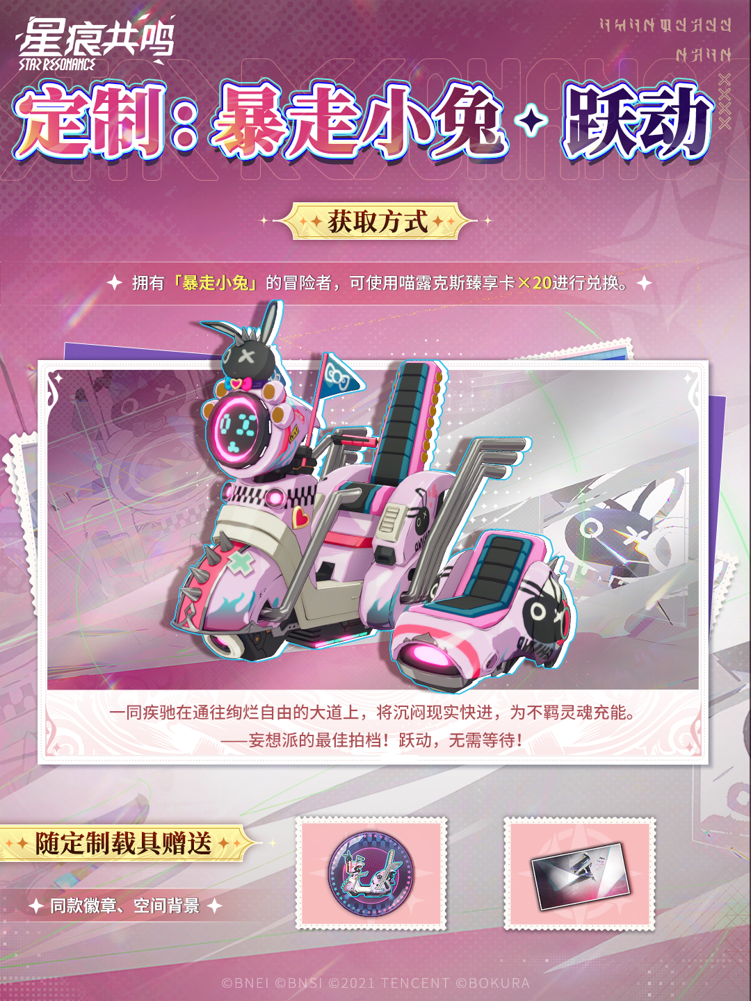 随设定册赠送系列单品、徽章、空间背景及情感动作解锁券。焕新装束「妄想系电波·异常」,让所有心动电波皆有回响;搭配「暴走小兔·跃动」疾驰,让引擎轰鸣引爆所有妄想。