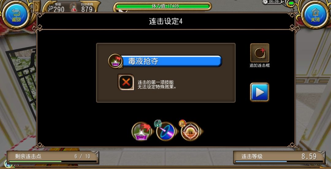 第一次平a到猛毒一用毒液夺取技能,之后可以等待怪物自己中毒到猛毒二夺取