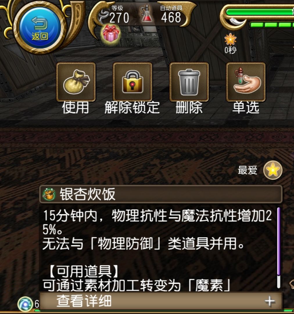 穿甲油、银杏饭、神速魔壶、魔力药。