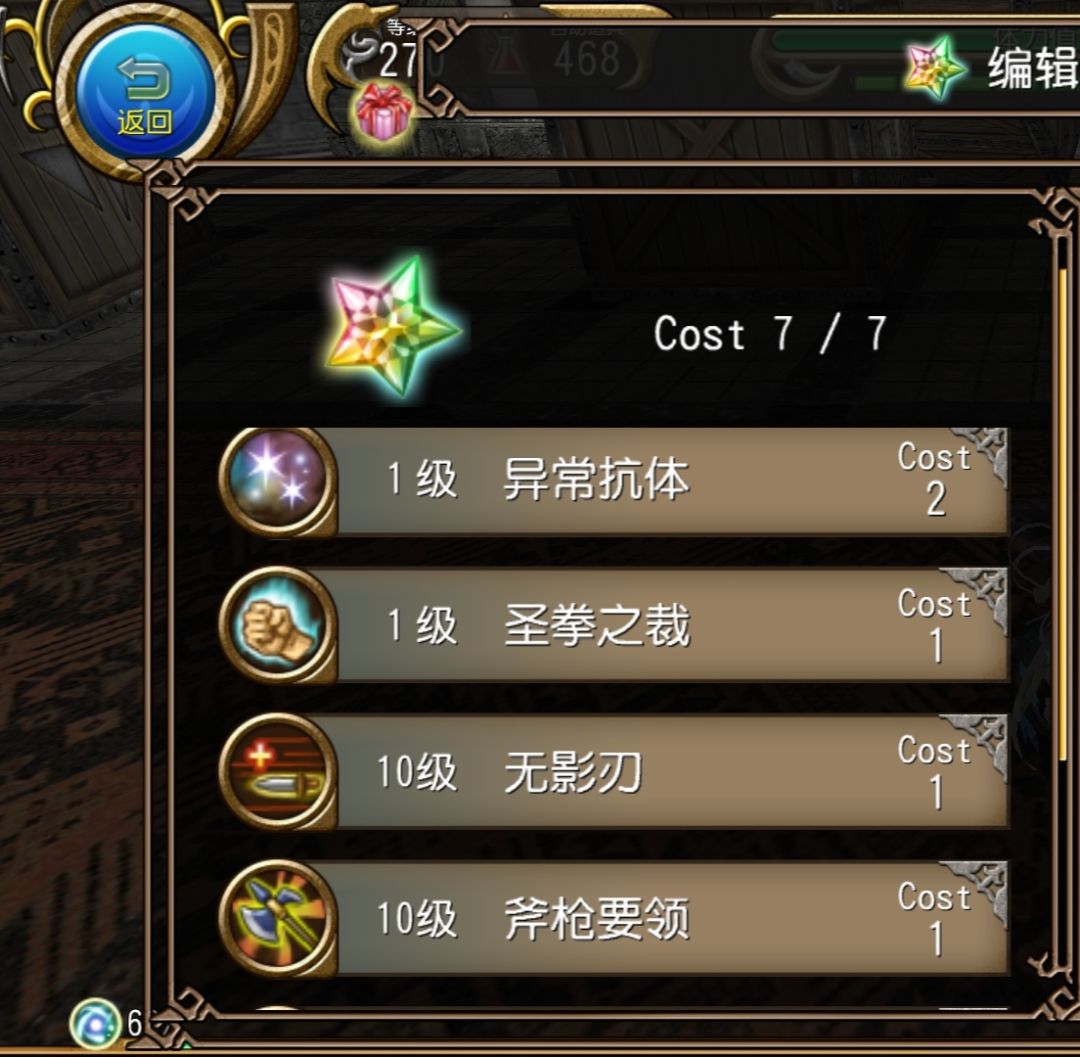 圣拳不要带,可以选择换成飞刃或者强打,异常抗体可以解除流血