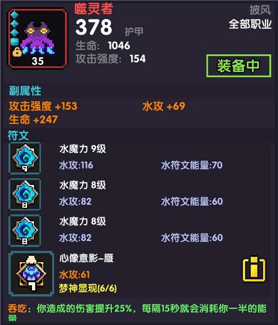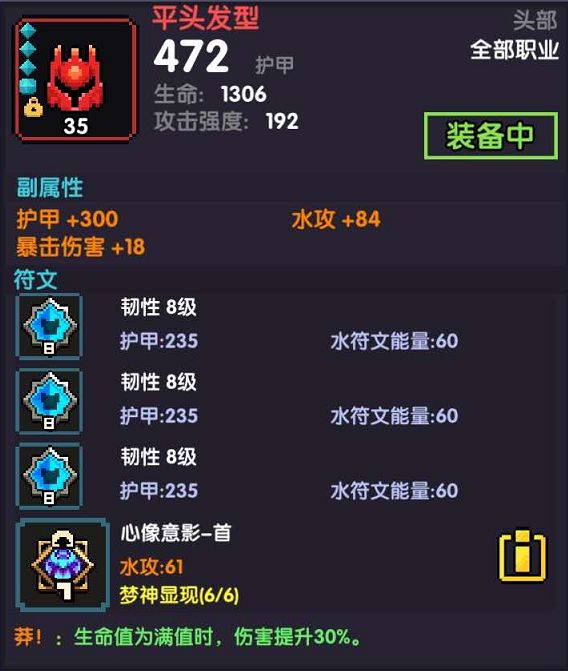属性选择:水功,首领,暴击值/穿透(因为我没带大师需要补暴击所以夜袭洗了暴击值)