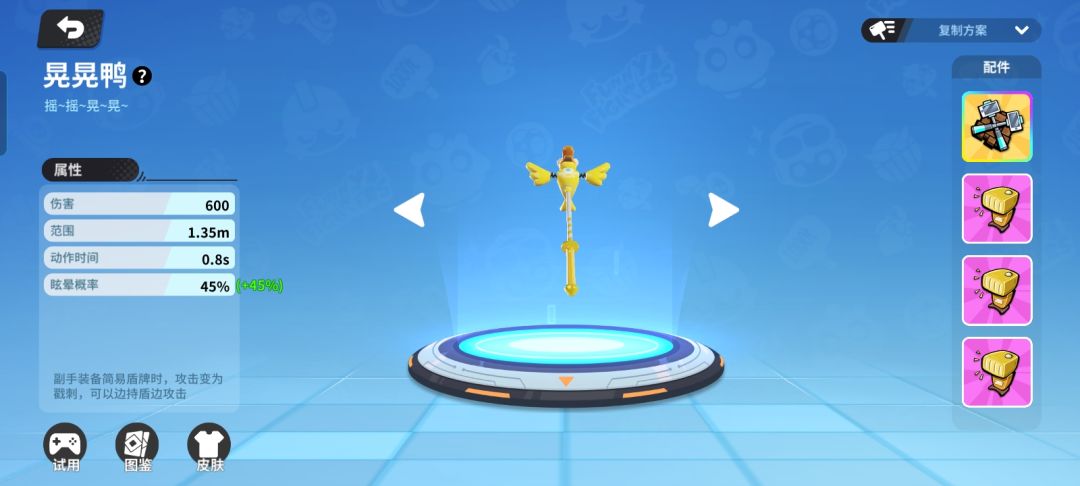评价:配件强度中等偏下,因为此配件必须搭配木盾使用实战中还要浪费时间去找盾牌,局限性非常大,此配件更偏向娱乐性质
