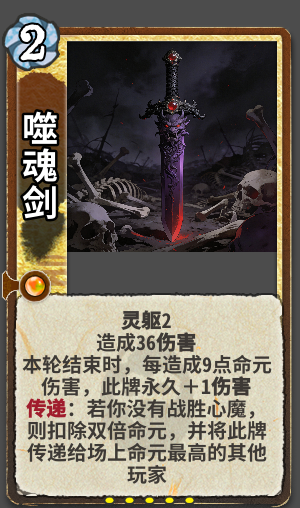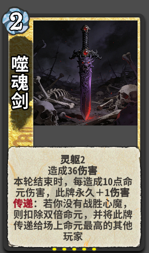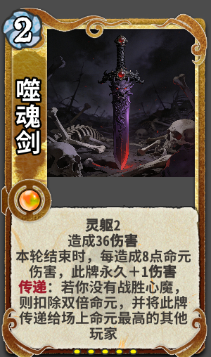 灵躯:使用此牌时灵气每不足一点,则失去5点生命令此牌少耗1灵气。
