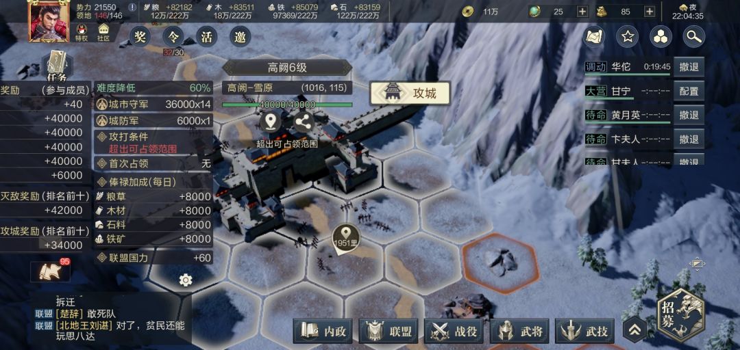 其次,难度降低是根据本州的活跃情况和时间来根据调整的,我们可以看到这个六级关卡难度降低到了4万相当于六级城的城防直接给你削了一半emm(并且还会继续降底)