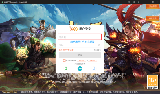 第五步:登录您通过手机号注册、用户名注册的官方账号即可。